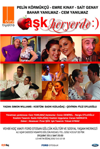 Tiyatro Duru'dan, başrollerde Pelin Körmükçü, Emre Kınay, Sait Genay'ın rol aldığı Aşk Heryerde adlı oyunda, aşkı ile çocukluk hayalinin gerçekleşmesi arasında bir tercih yapmak durumunda kalan Lenny'nin hikayesi...