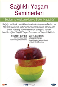 Seminerde Uzman Dr. Soner Dileklen, sağlığın ve birçok hastalığın temelinde rol oynayan beslenme alışkanlıklarımız ve çağımızın bir numaralı sağlık sorunu olan şeker hastalığı hakkında katılımcıları konu ile alakalı aydınlatacak.